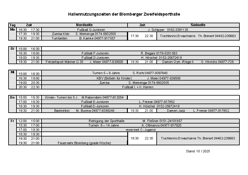 Hier stehen die aktuellen Hallenbelegungszeiten für Training.